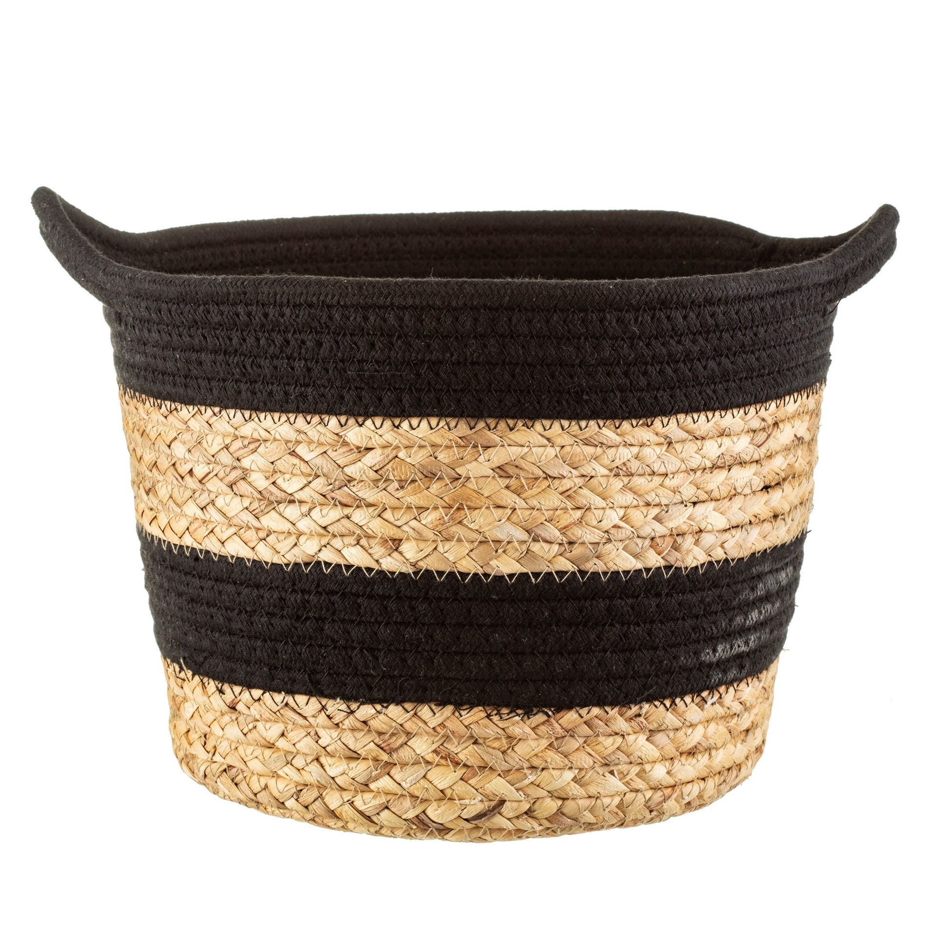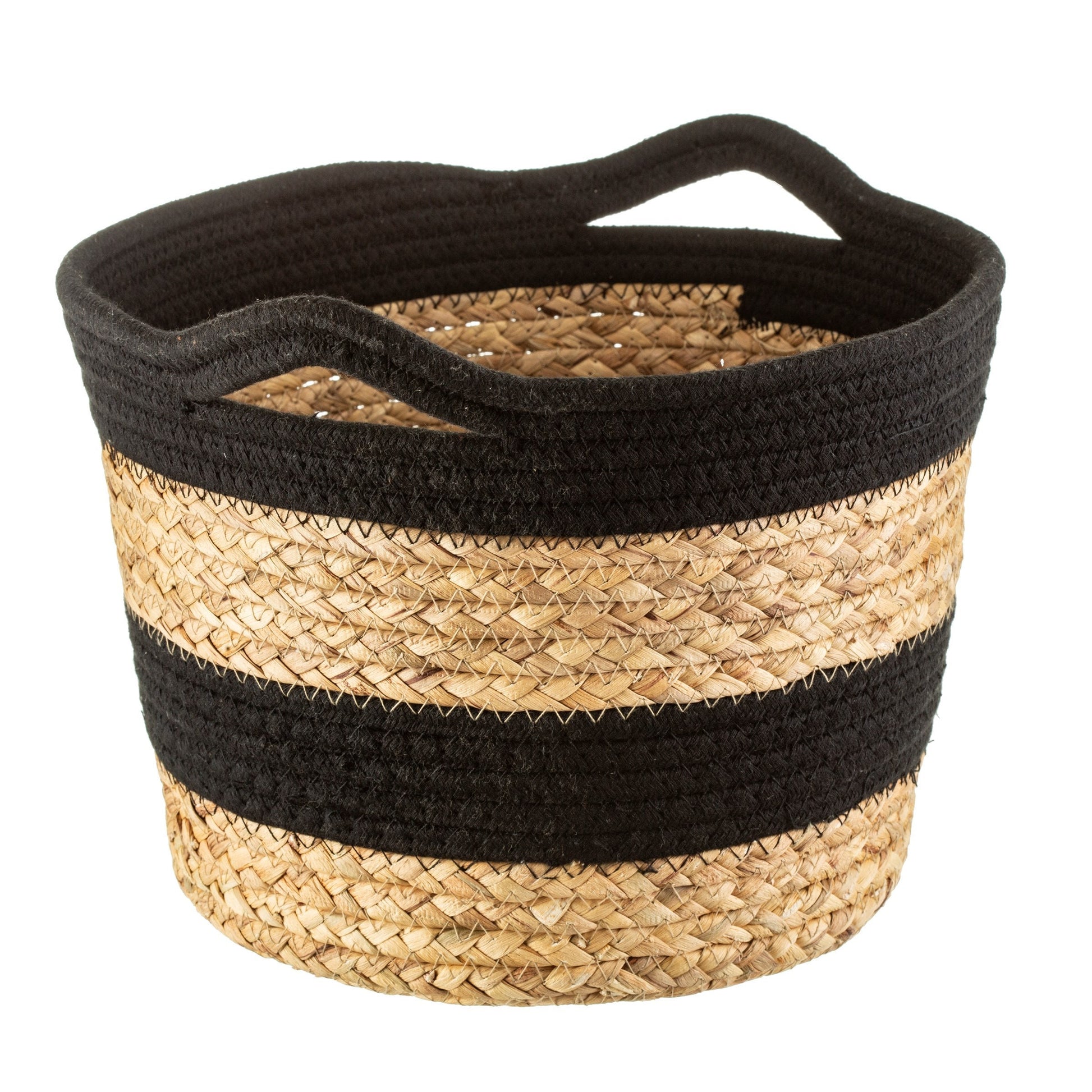 This rather pretty scandi Boho storage basket is made from gorgeous natural seagrass and finished with black rope to create a chic black stripe pattern.