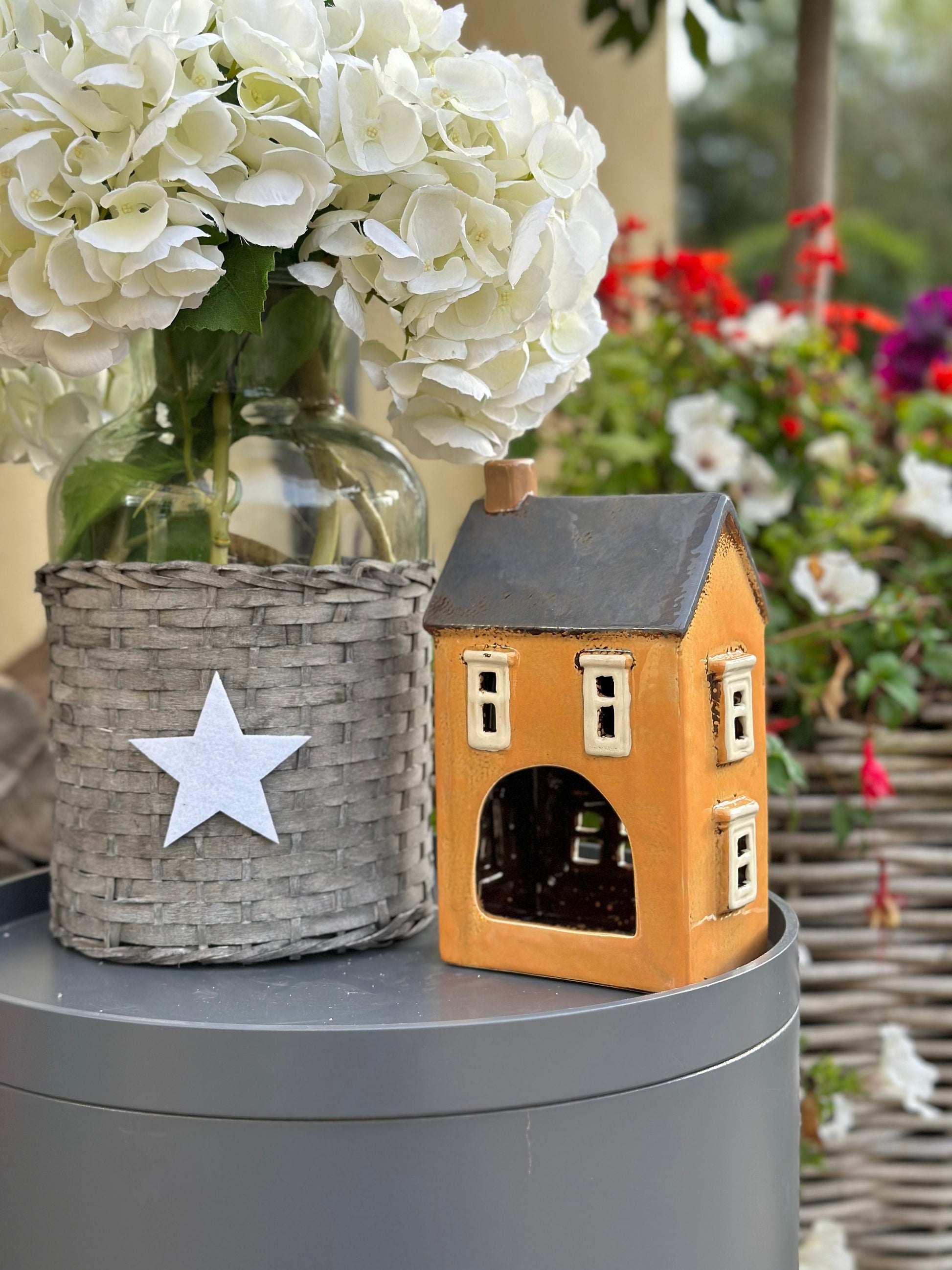 Burnt Orange Ceramic House/Cottage Candle Holder - 22cm