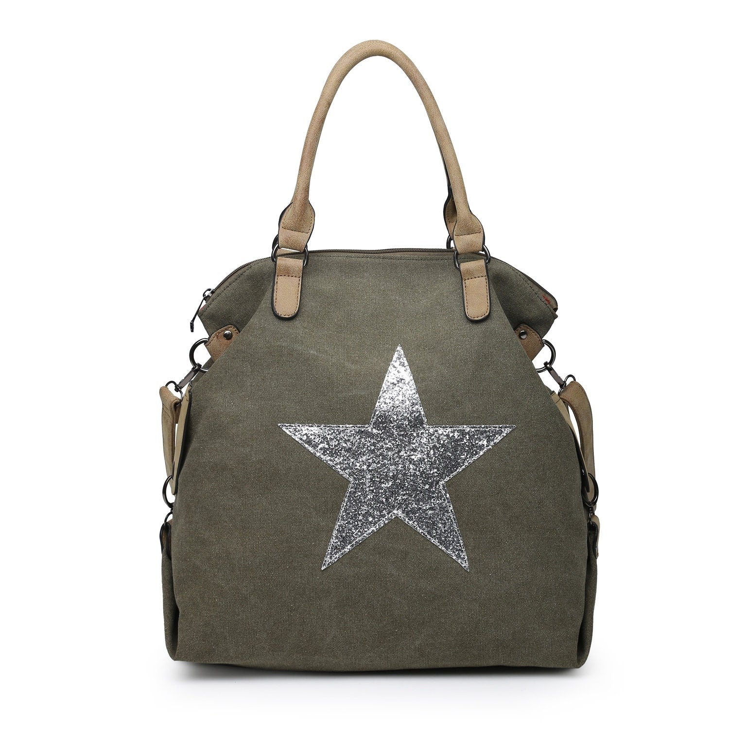 Stunning dark grey canvas tote bag featuring a glam sparkly star. Oversized bag so great for days out, beach & shopping