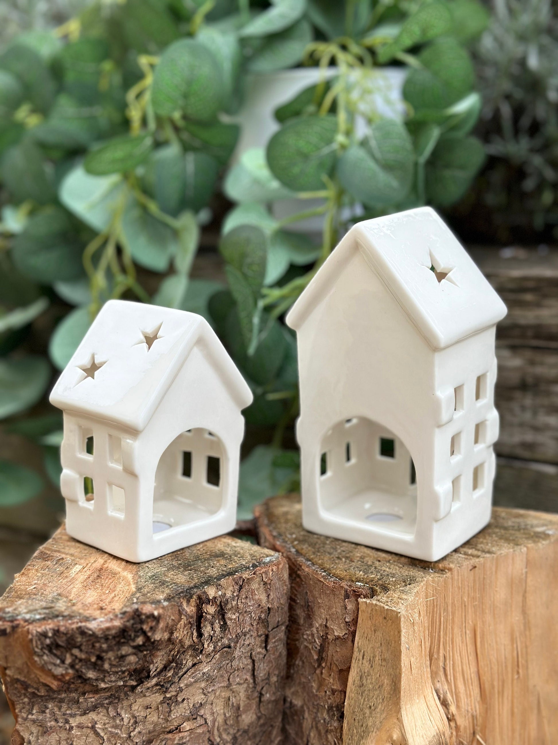 Ceramic Tea Light Heart/Star House - 2 Sizes Available