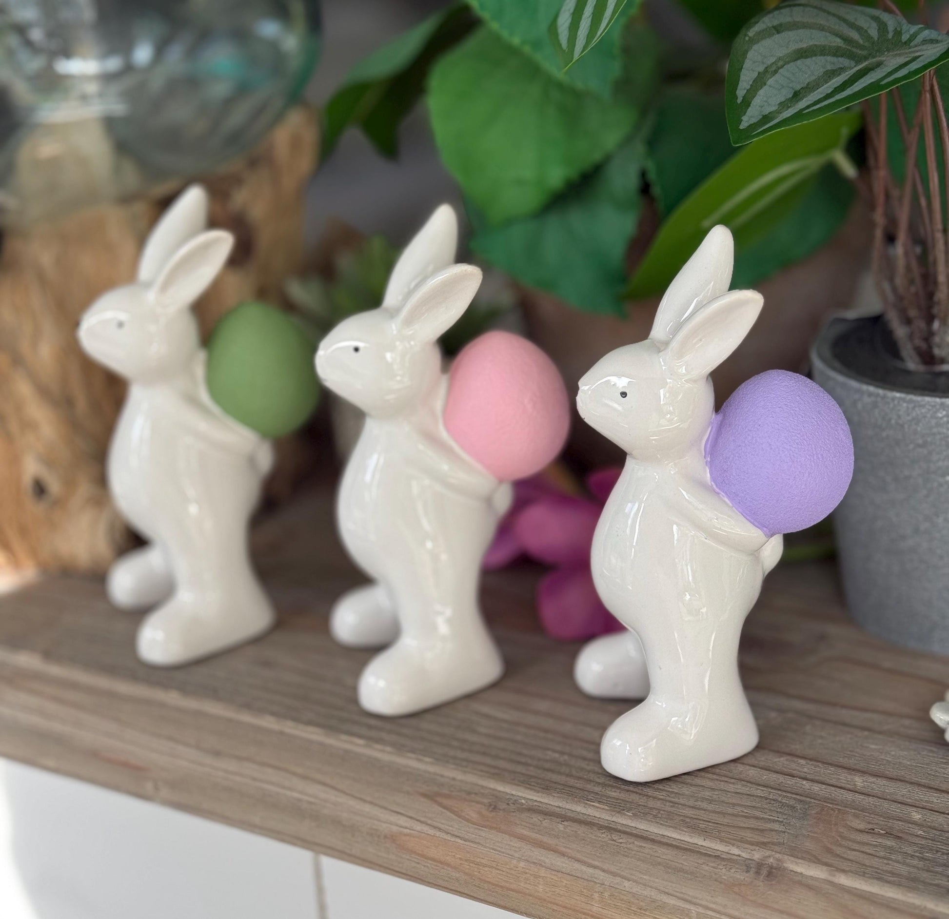 Glossy Ceramic White Bunny - Hand-painted Eggs available in 2 egg colours.