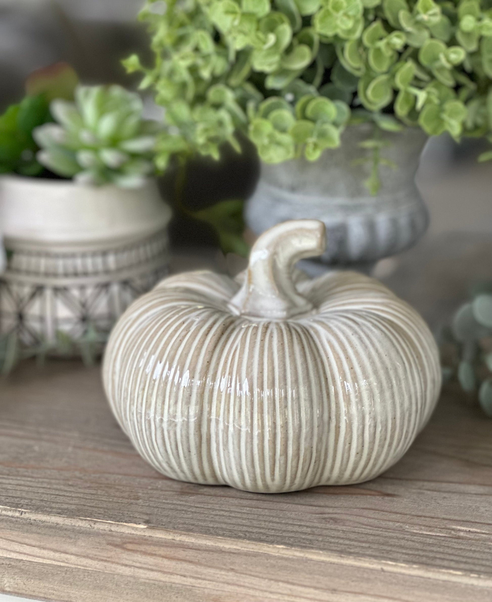 These beautiful White ceramic pumpkins are the perfect display piece to bring Autumn vibes to your home, they look perfect as a set or you can dot the individual ones around your home.