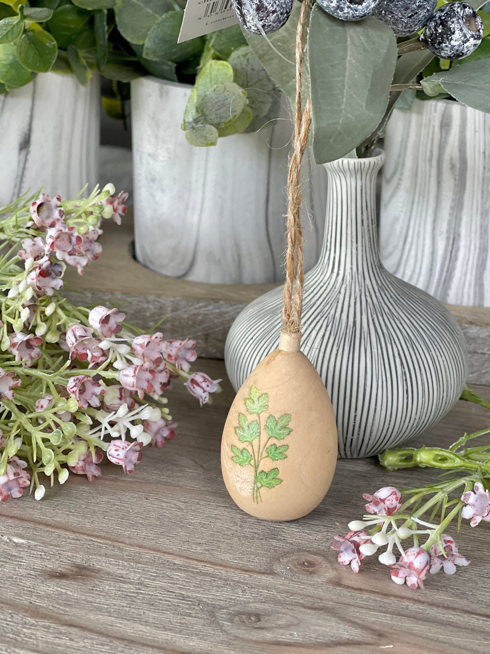 Gisela Graham Herb Painted Wood Easter Egg Decoration