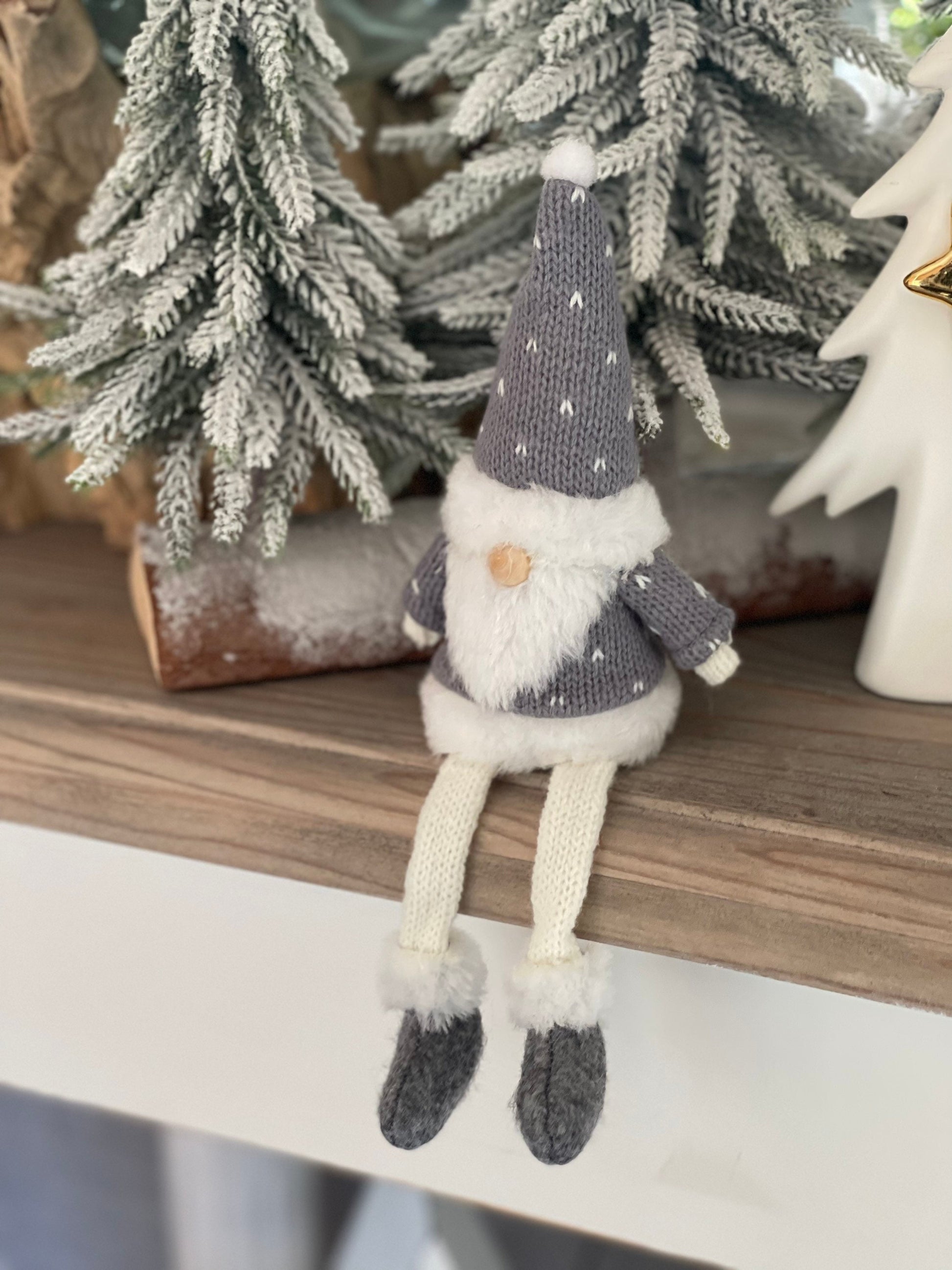 With his dangly long legs, white beard and knitted grey hat. This festive figure will be sure to sit just right in any themed interior or display
