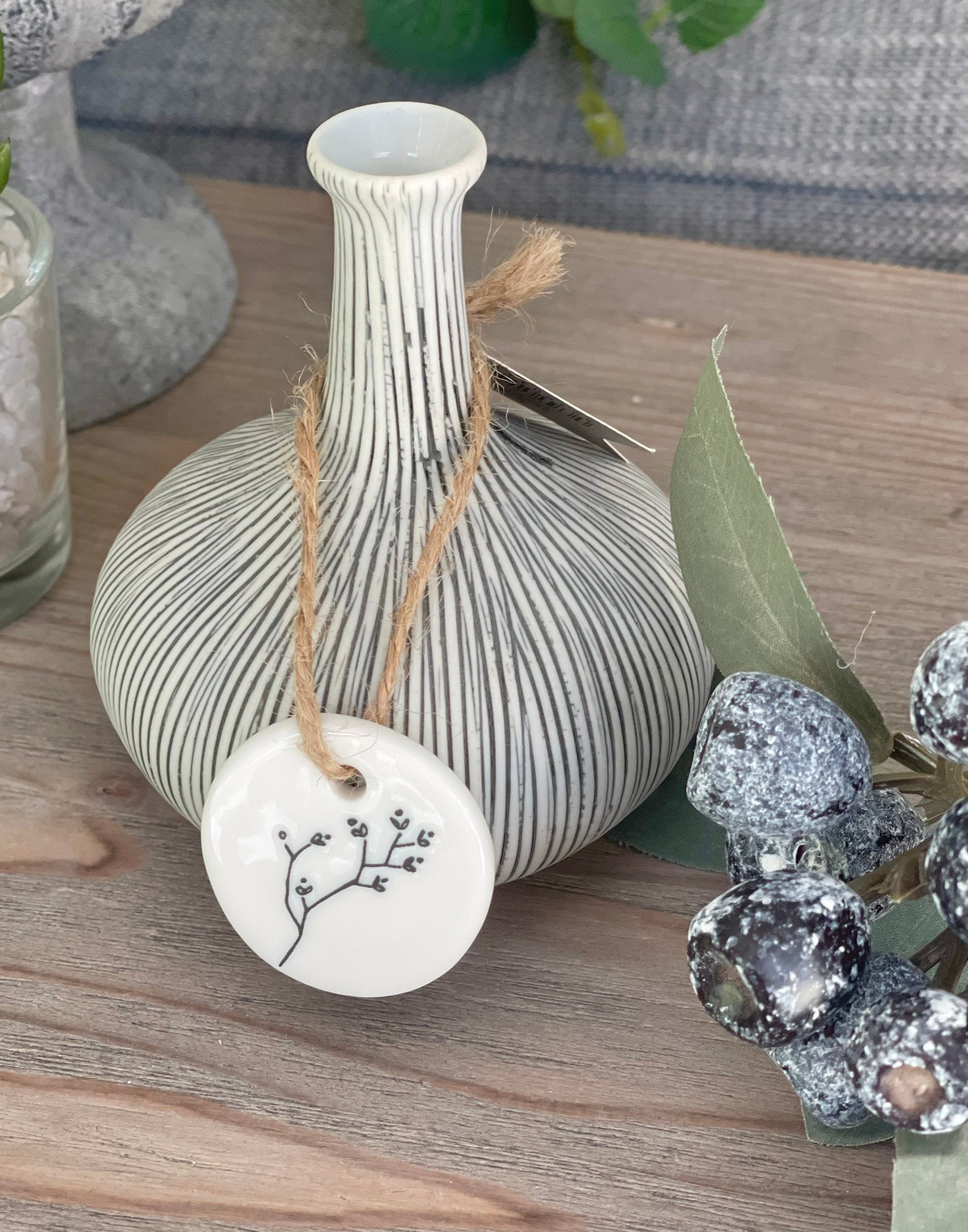 This beautiful little hanging porcelain token fashioned into a tactile round pebble reads  "Sending Hugs".