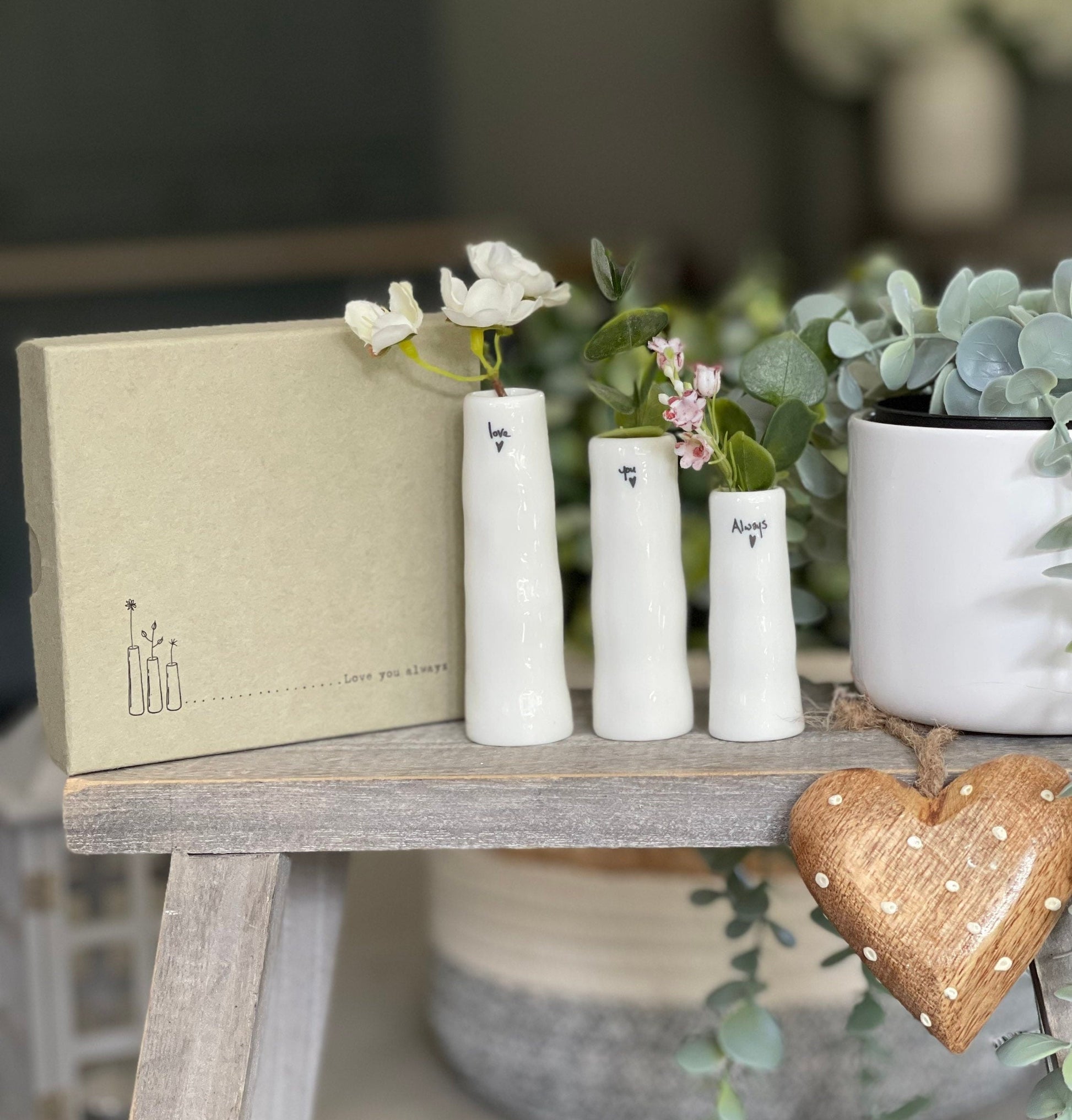 Set of 3 Porcelain Bud Vases - Love, You, Always