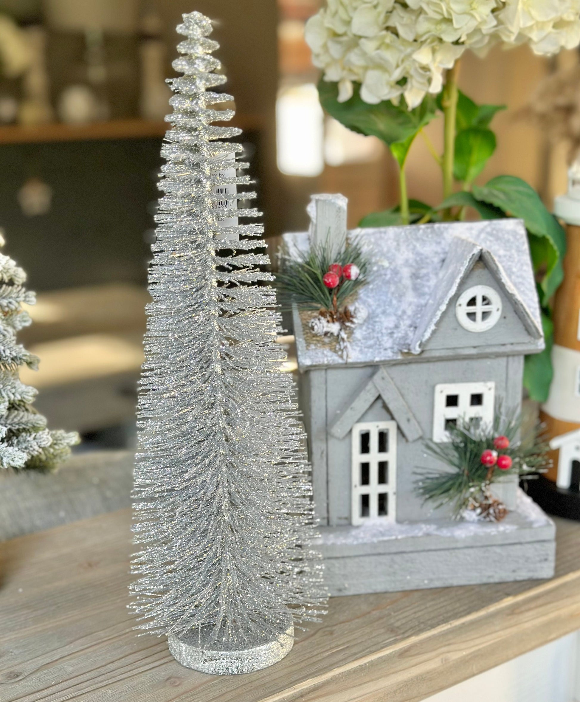 Complete your home décor with this Gisela Graham Iridescent Brush Tree. Created with silver wiry foliage before a sprinkling of coordinating glitter is dropped over the bristles.