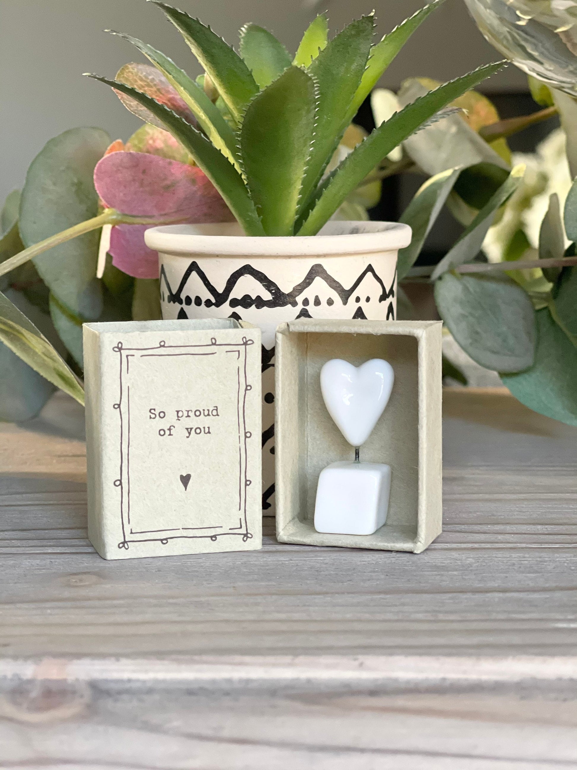 Beautifully designed and detailed detailed with a small heart attached to wire standing on a ceramic cube which gives this piece a contemporary, simple and stylish look