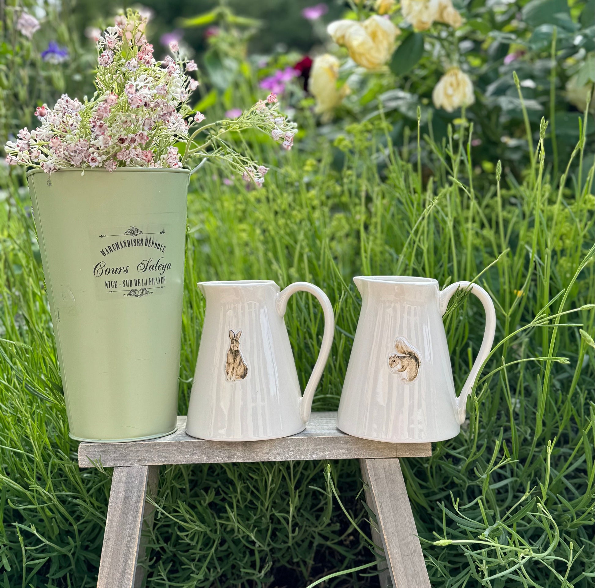 These beautiful country-themed stoneware Jugs feature an embossed Hare and Squirrel on the front.  Each is sold separately.