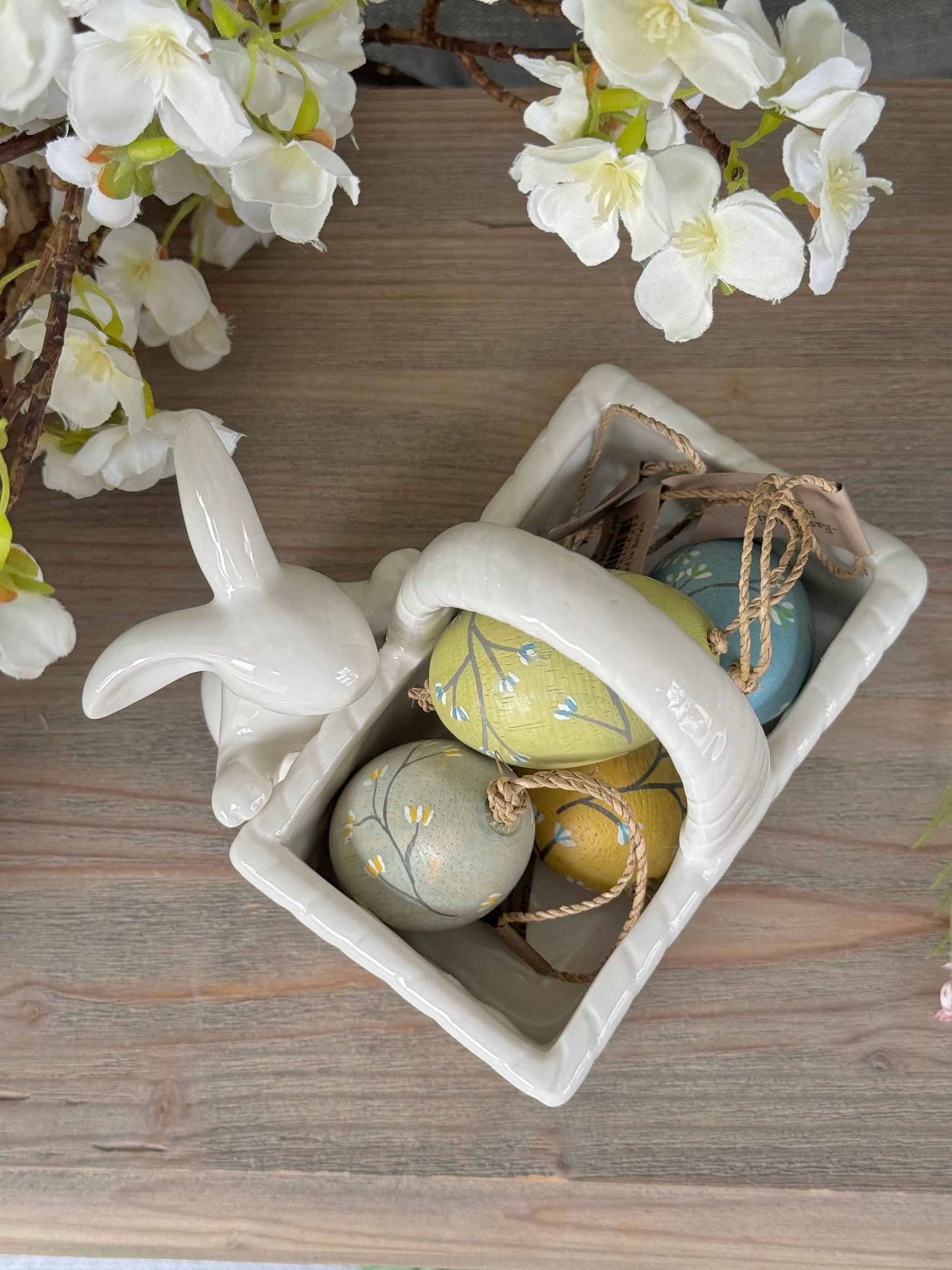 White Ceramic Bunny and Basket
