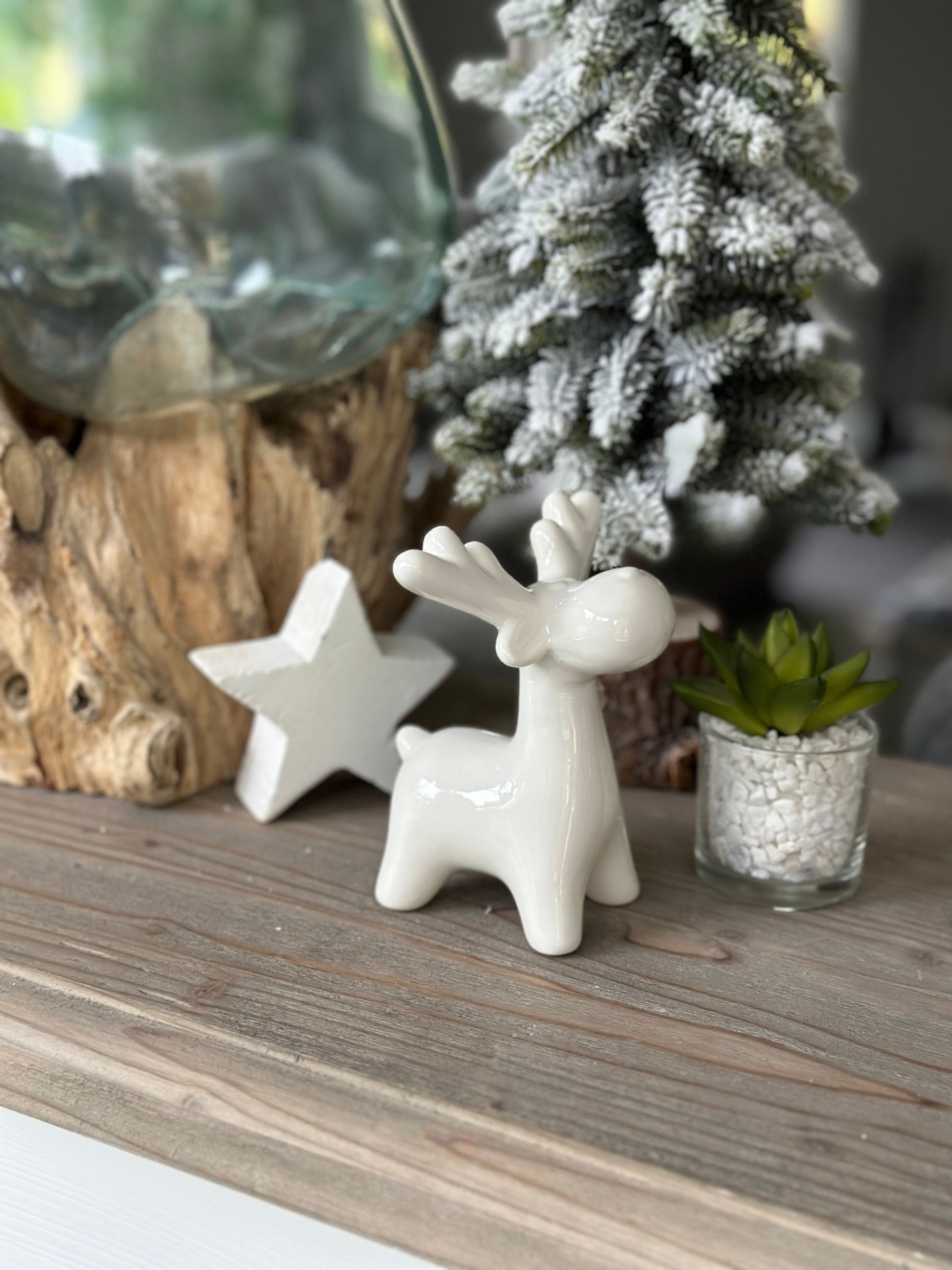This beautifully charming and sleek white ceramic reindeer is sure to add subtle character to your home this Christmas.